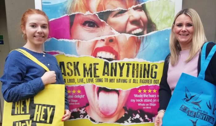 Here they are doing a lovely job of modelling our new Ask Me Anything tote bags on site at Live Theatre in Newcastle! Welcome gals!